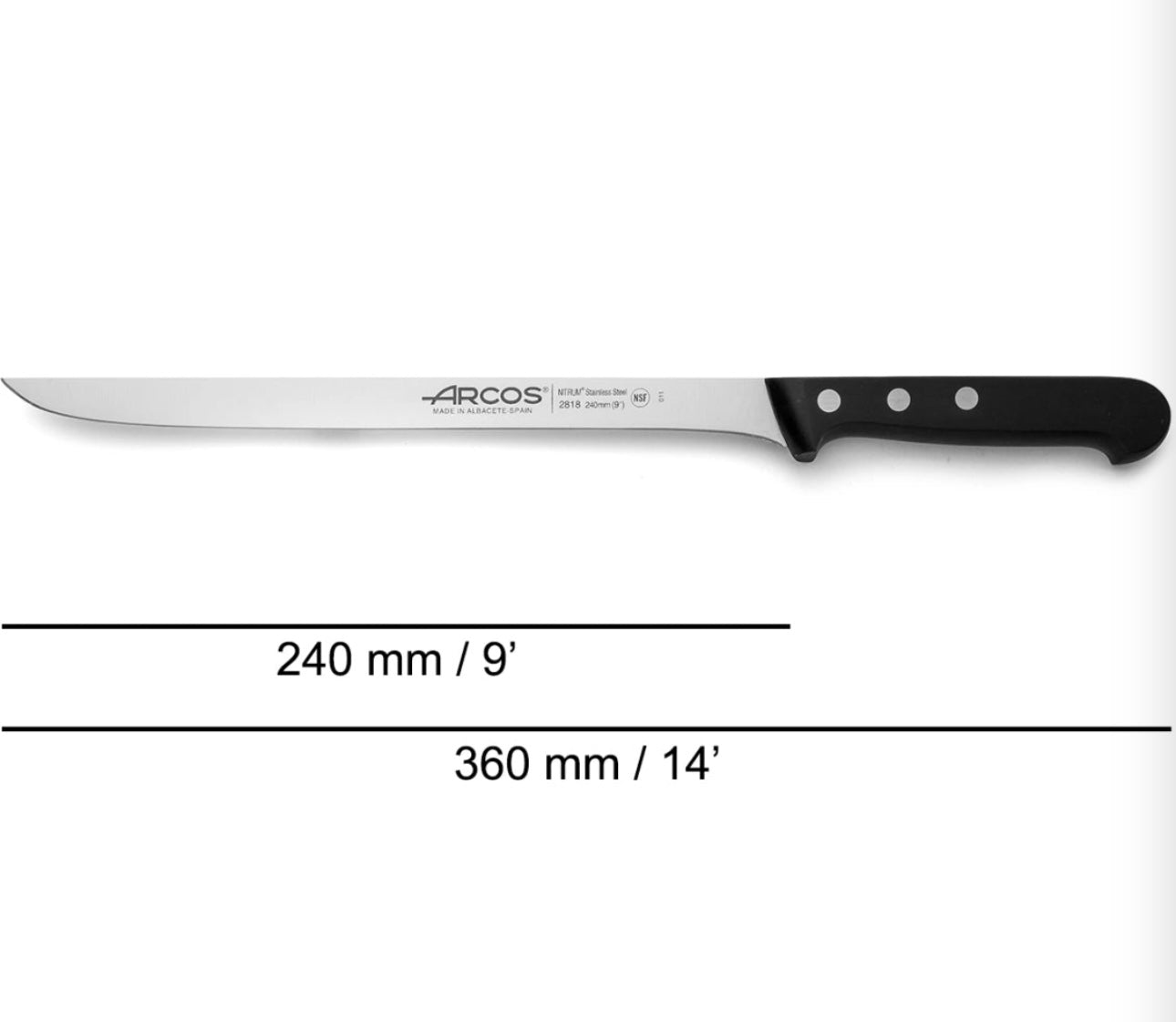 Este set jamonero incluye un cuchillo para cortar jamón y una chaira para afilarlo. Ambos productos están elaborados bajo los más estrictos parámetros de calidad de Arcos. Te serán de gran ayuda en cocina, tanto si eres profesional como un aficionado.